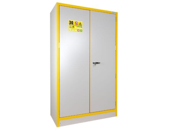 De Trionyx 3035E is een grote Type 30 veiligheidskast voor de veilige opslag van ontvlambare vloeistoffen in laboratoria en industriële omgevingen.